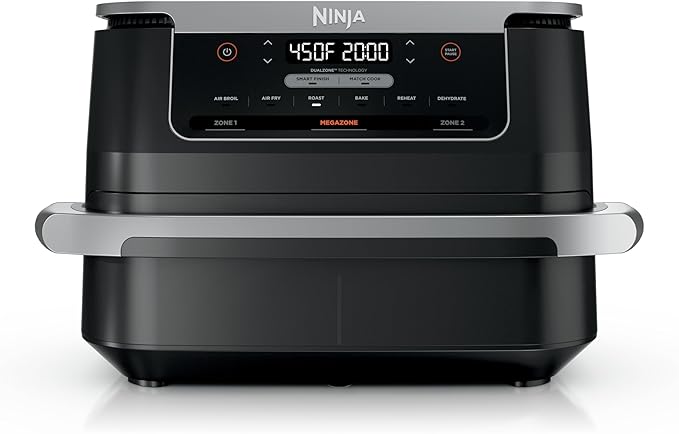 Ninja Foodi 6-in-1 FlexBasket Air Fryer with 7-QT MegaZone & Basket Divider for Large Proteins & Full Meals, Smart Finish Cook 2 Foods 2 Ways, Family Sized Capacity, Air Fry, Roast & More, Black DZ071