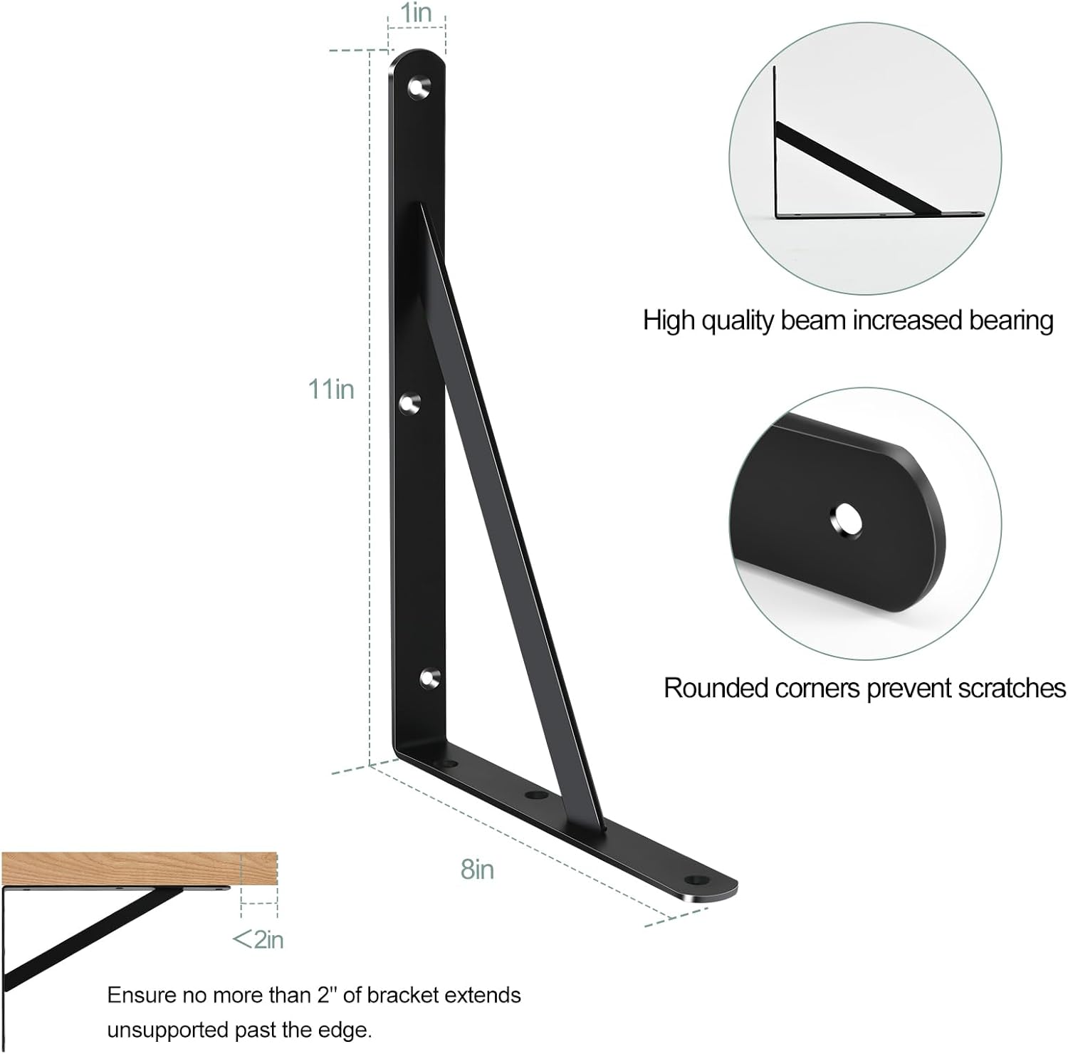 6 Pack L11 x H 8" Black Heavy Duty Shelf Brackets with Screws Metal Shelf Brackets Shelf Support Angle Brackets for Shelves L Brackets Heavy Duty Floating Shelf