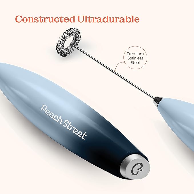 Powerful Handheld Milk Frother, Mini Milk Foamer, Battery Operated (Not included) Stainless Steel Drink Mixer with Frother Stand (Dark Sky)