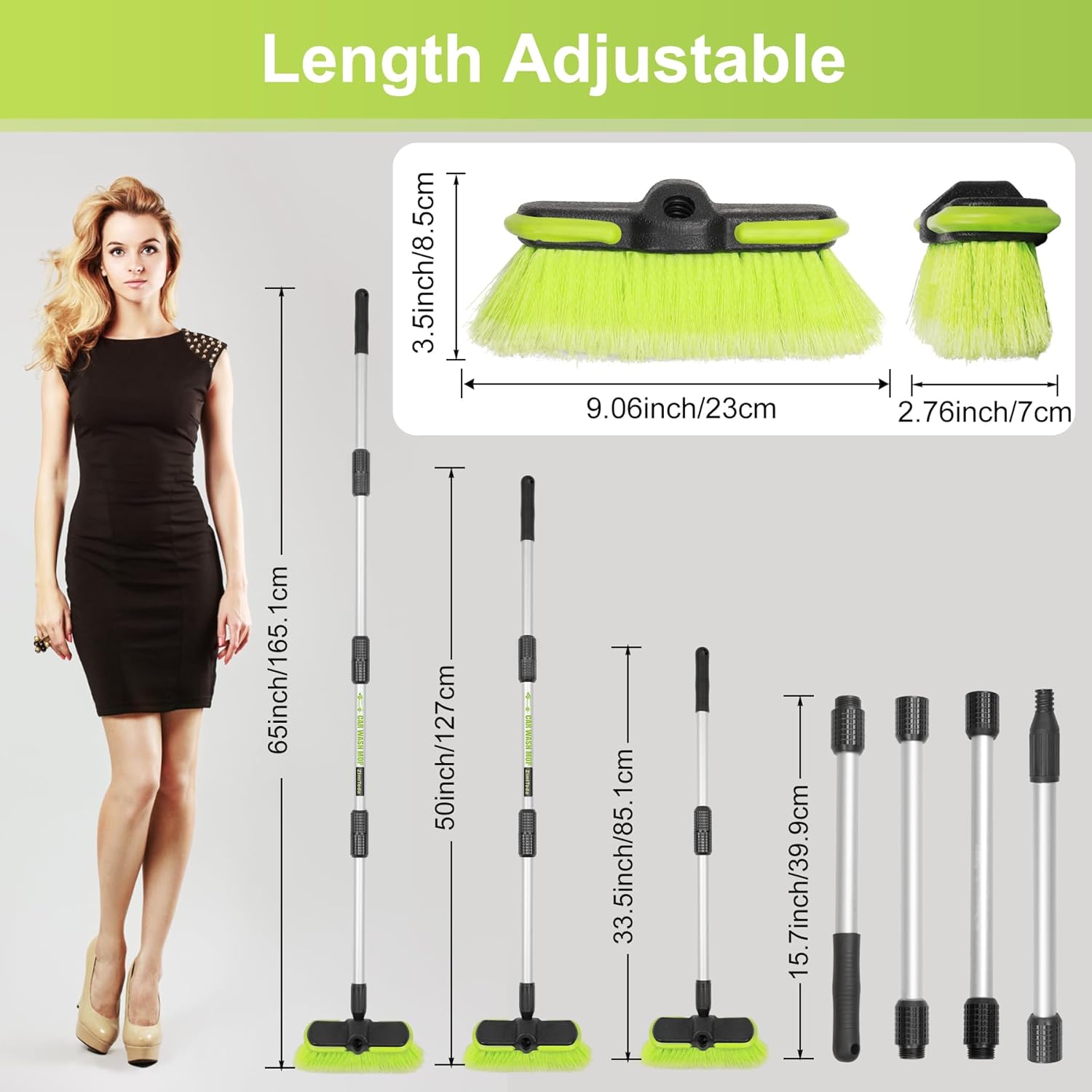 - 【65“Long Handle Car Washing Brush】Soft bristle cleaning brush handle consists of 4 sections of about 40cm aluminum rods, lightweight, durable and easy to carry. You can freely combine different lengths of car cleaning brush rods according to the place you want to clean(Extends to 16"/40cm, 34"/85cm, 50"/127cm, 65"/165cm), allowing you to avoid stretching, bending or twisting, and easily complete the car cleaning work.