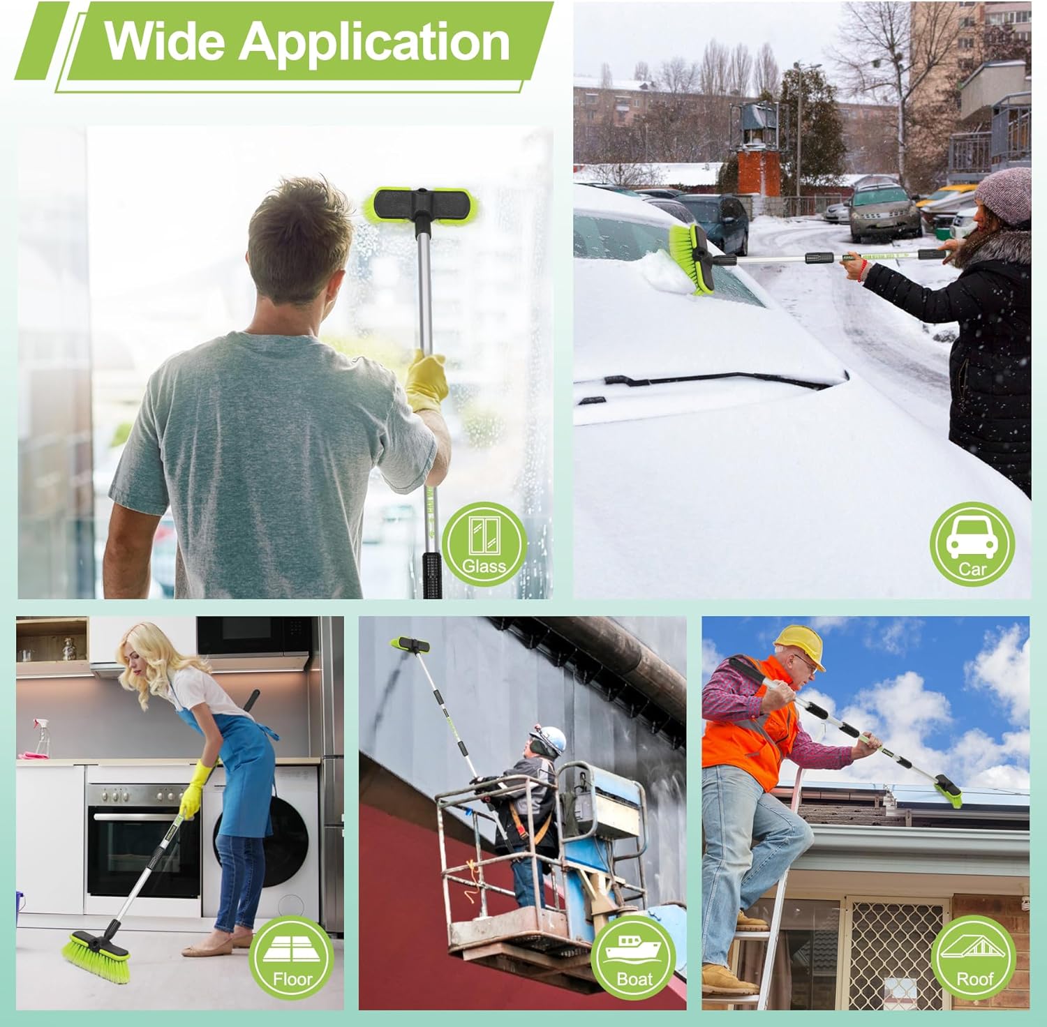 - 【Multi-purpose Car Washer Brush】This car wash brush with long handle is versatile and practical. The car windshield snow brush is perfect for cleaning or washing solar panels, house siding, auto cars, trucks, SUV, RV, boats, driveways, decks, floors, patios, bathrooms, showers,remove snow during winter time and more!