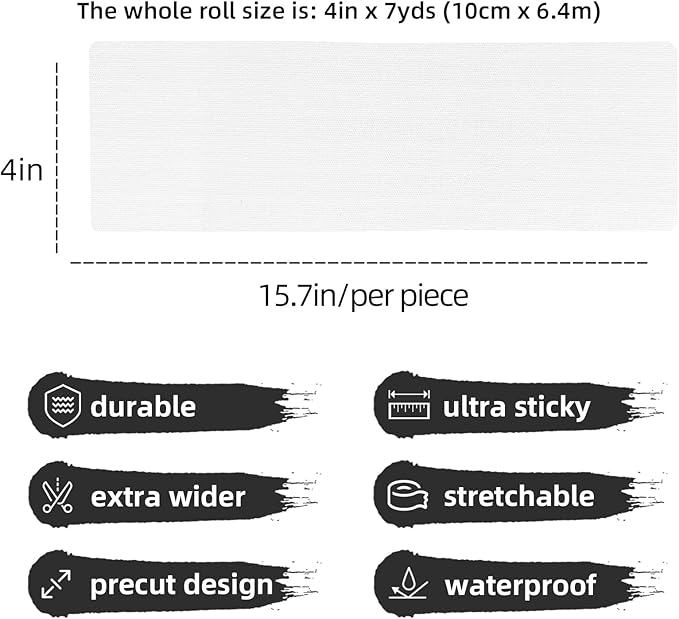 OK TAPE Turf Tape Football, Extra Wide Turf Tape for Turf Burn, White Kinesiology Tape Waterproof, Durable and Super Sticky, 4in x 21ft (4in x 15.75in/16pcs)