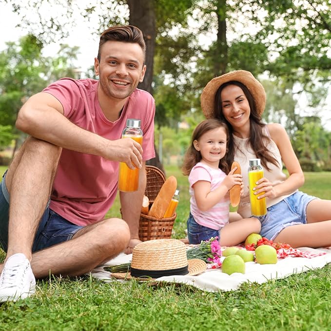 - ECO-FRIENDLY Clear Glass Bottles - Our drinking glass bottles, including juicing bottles, are made of good-grade material, sturdy, no odors, and BPA free. Glass bottles with airtight lids ensure freshness.The 18 oz glass water bottle is ideal for fruit juice, water, drinks, brew, kombucha, etc.