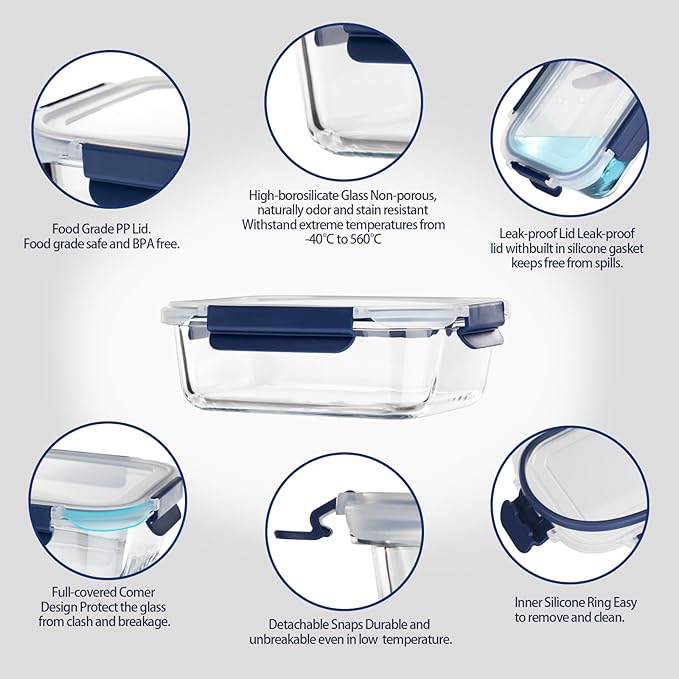 - Bpa-free & Lead-free & High-borosilicate glass - The Glass Storage Containers are BPA Free, and made out of high-borosilicate glass for easy heating and durability. non-porous glass, Free of Harmful Chemicals.