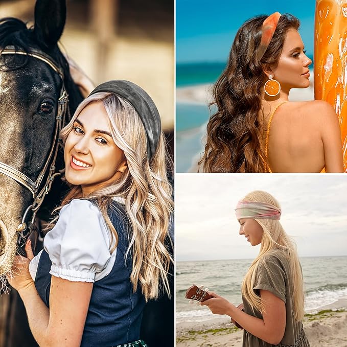 - 【Elastic headbands】Women yoga running headbands measures 8.8" in length and 4" in width; wide female sweat-wicking headbands one size fit most, elastic, very soft and stretchy, a good size to fit women and girls. Vintage design sports fitness yoga exercise soft stretchy headband highlight boutique headband elegant and charming features when you exercising.