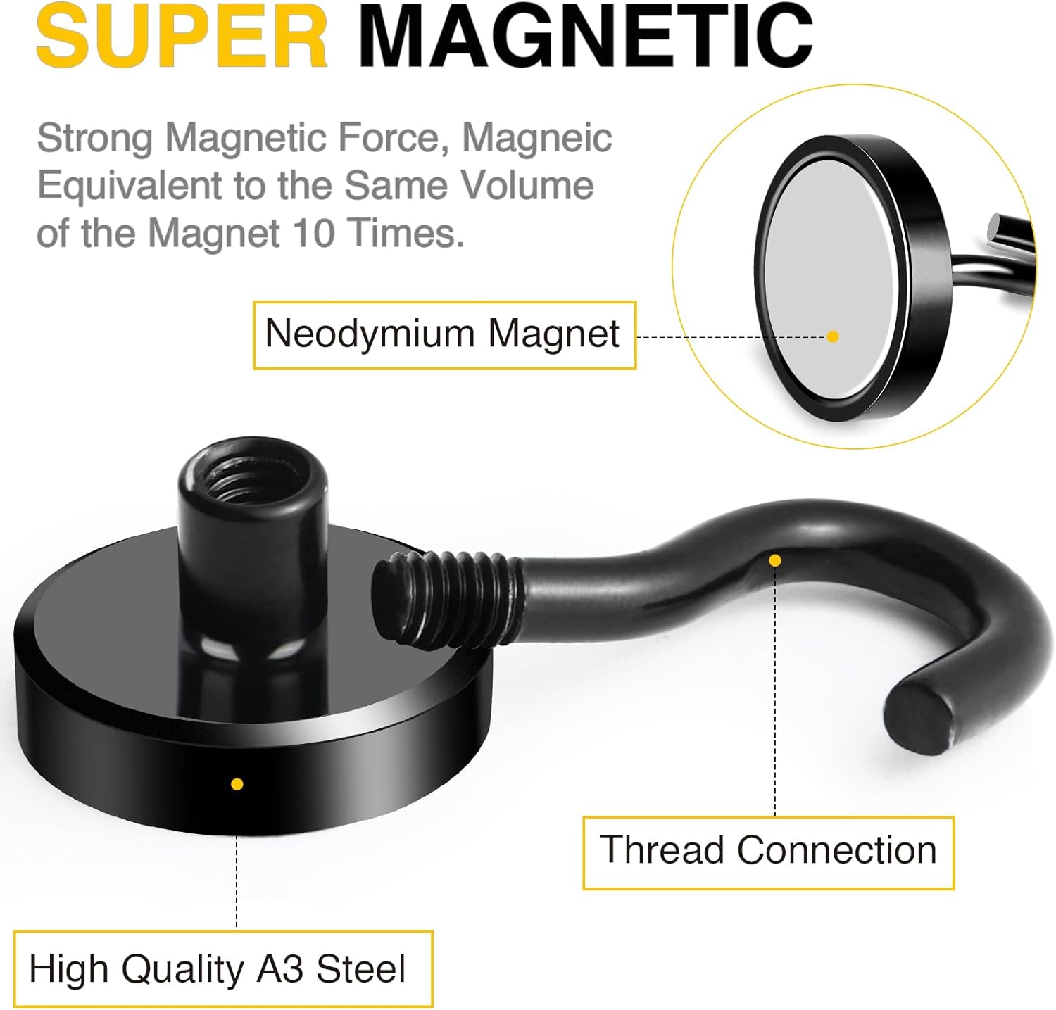 - 【Excellent Black Layer Coating】Strong rare earth neodymium magnet hooks are plated with 3 layers of protective coatings - Nickel + Copper + Nickel (Ni-Cu-Ni), which can greatly resist rust and corrosion, making magnetic hooks ideal for long term use.