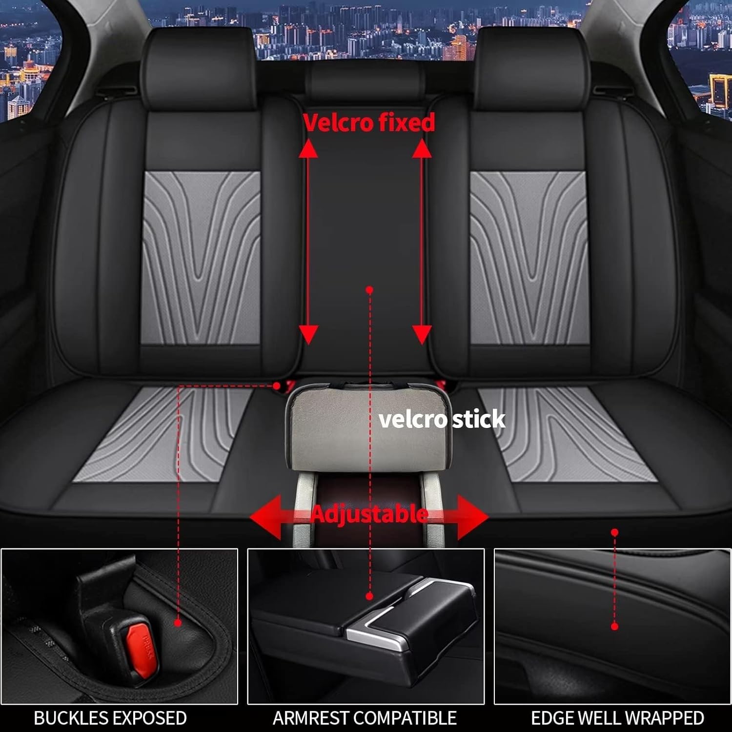 - 🚙【HIGH-QUALITY MATERIAL】:Surface material made of high quality faux leather, soft, durable and waterproof. The delicacy perforations bring breathable comfort experience.The middle part use high rebound sponge,create top resilience for maximum comfort during your drive. Non-slip fabric is used on the bottom layer,keep the covers in place .