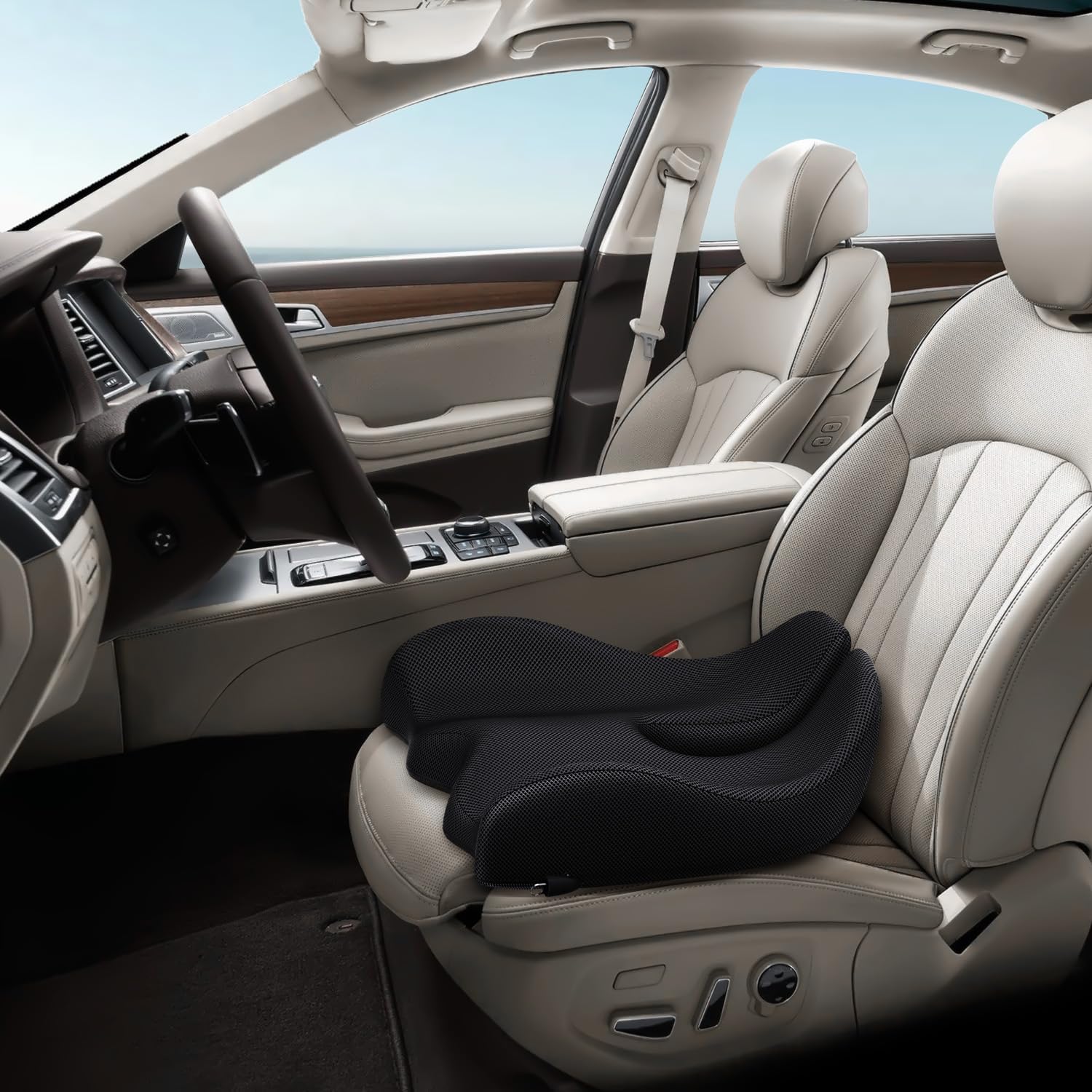 - 🏅【Ergonomic Design for Superior Comfort】Our memory foam seat cushion is expertly crafted to enhance your posture and cradle your thighs and hips, providing unmatched comfort during long periods of sitting!!!
