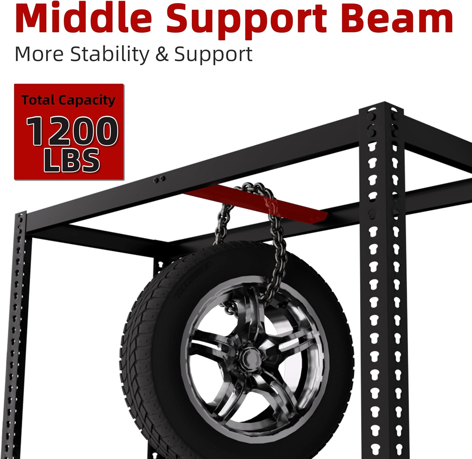 - - Quick and easy assembly: No need to pay a handyman or spend your Sunday afternoon struggling with screws, nuts, and bolts! This metal garage shelving rack comes with everything you need for easy and quick installation in just a few minutes(Including a rubber mallet and installation gloves