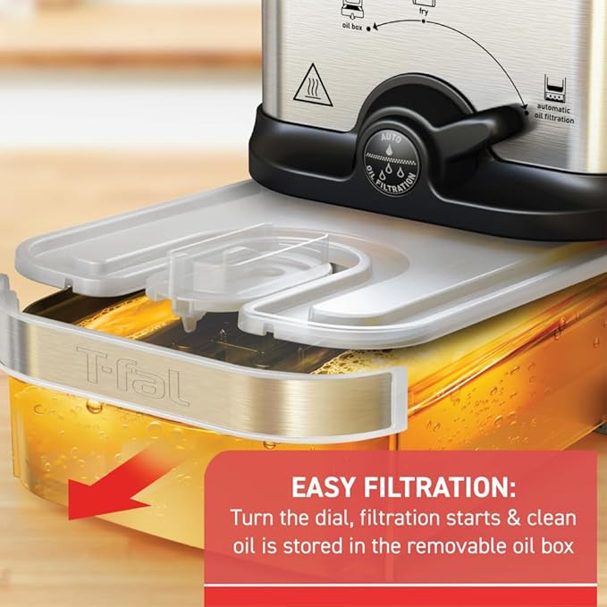 - Ultra easy cleaning: Our deep fryer comes with dishwasher-safe components including the cooking basket, bowl, lid, and oil box. Experience the convenience of professional deep-frying at home with the T-Fal EZ Clean Compact!