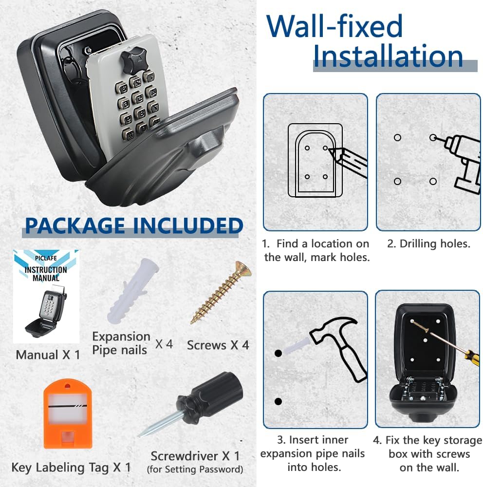 - 【Easy Installation and Use】Our key lock box comes with a back hook and screws, so you can hang it on the car window or fix on the wall. It has a 12-digital password keypad featuring thousands of combinations for maximum security. (Note: 1.Please take a photo record or record with a note after setting a new password, forgetting the password will make it unusable. 2.It's not suitable for vehicles with keyless access as the lock box doesn't block the signal. If you would like to try, you could try to line the inside of the box with tin foil).