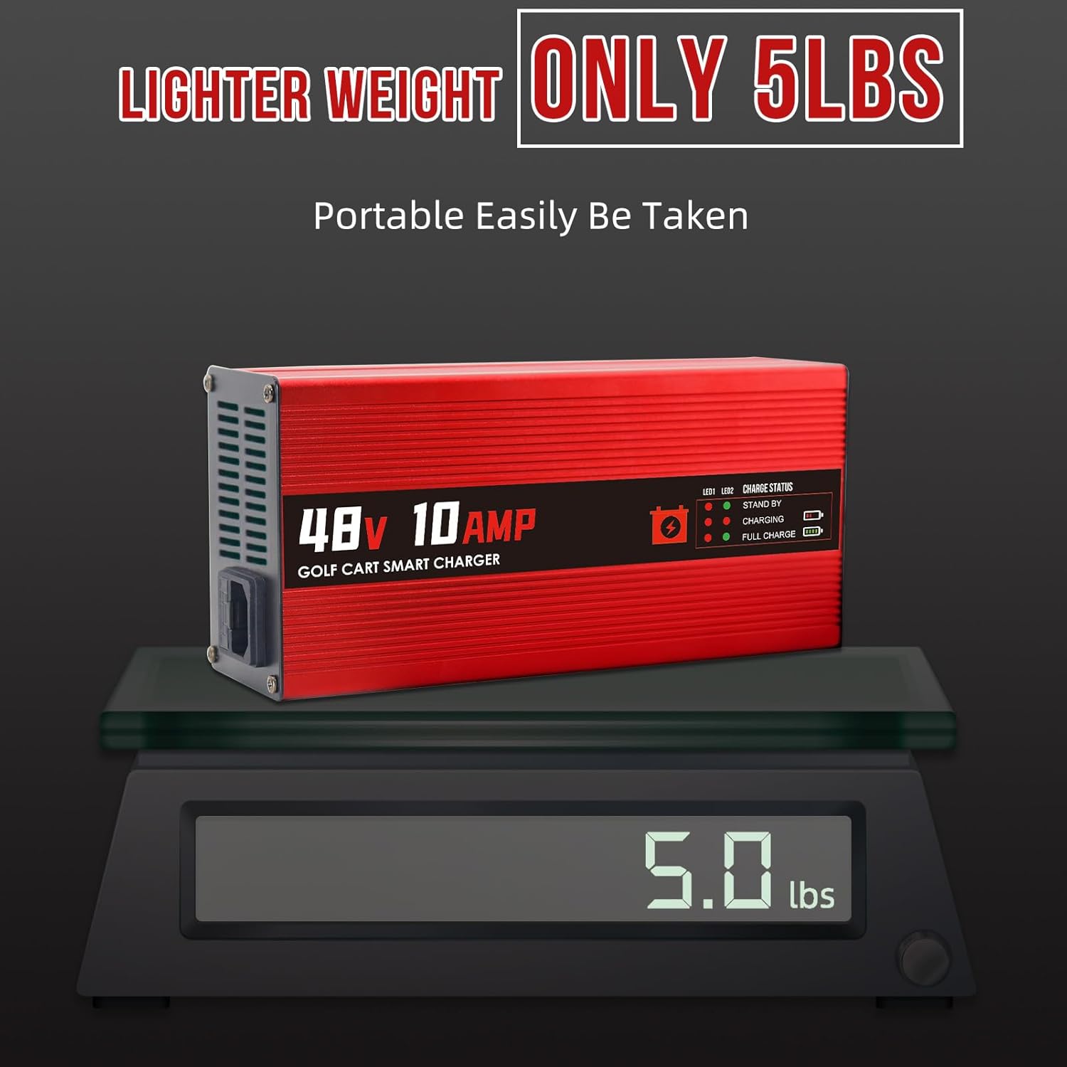 - 【48VOLT 10AMP SMART CHARGER】- Perfect replacement for older charger with 3-Pin Leaf Style Plug,full charge in 6~10 hours for Lead-Acid battery, professional golf cart charger.