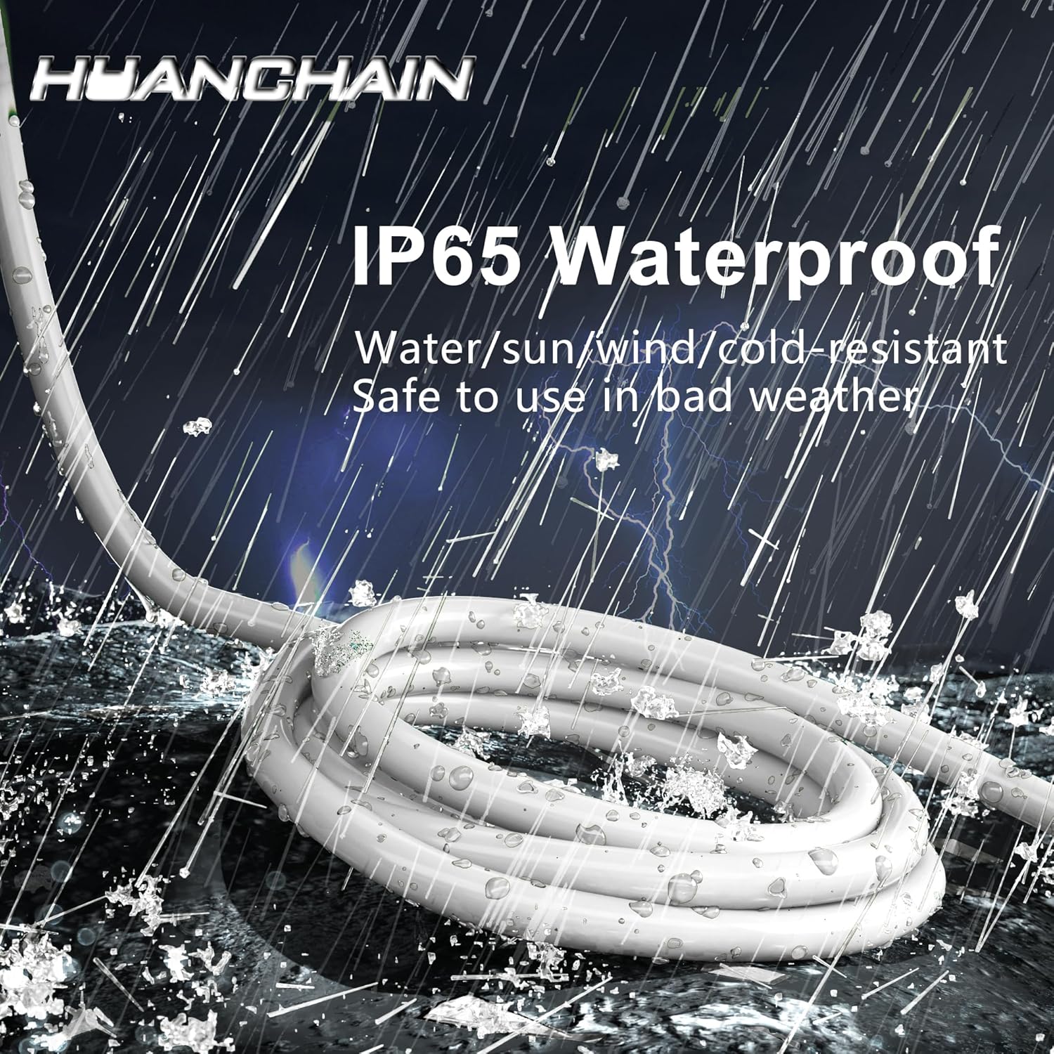 HUANCHAIN Indoor Outdoor White Extension Cord 8 ft Waterproof, 16/3 Gauge Flexible Cold-Resistant Appliance Extension Cord Outside, 13A 1625W 16AWG SJTW, 3 Prong Heavy Duty Electric Cable, ETL