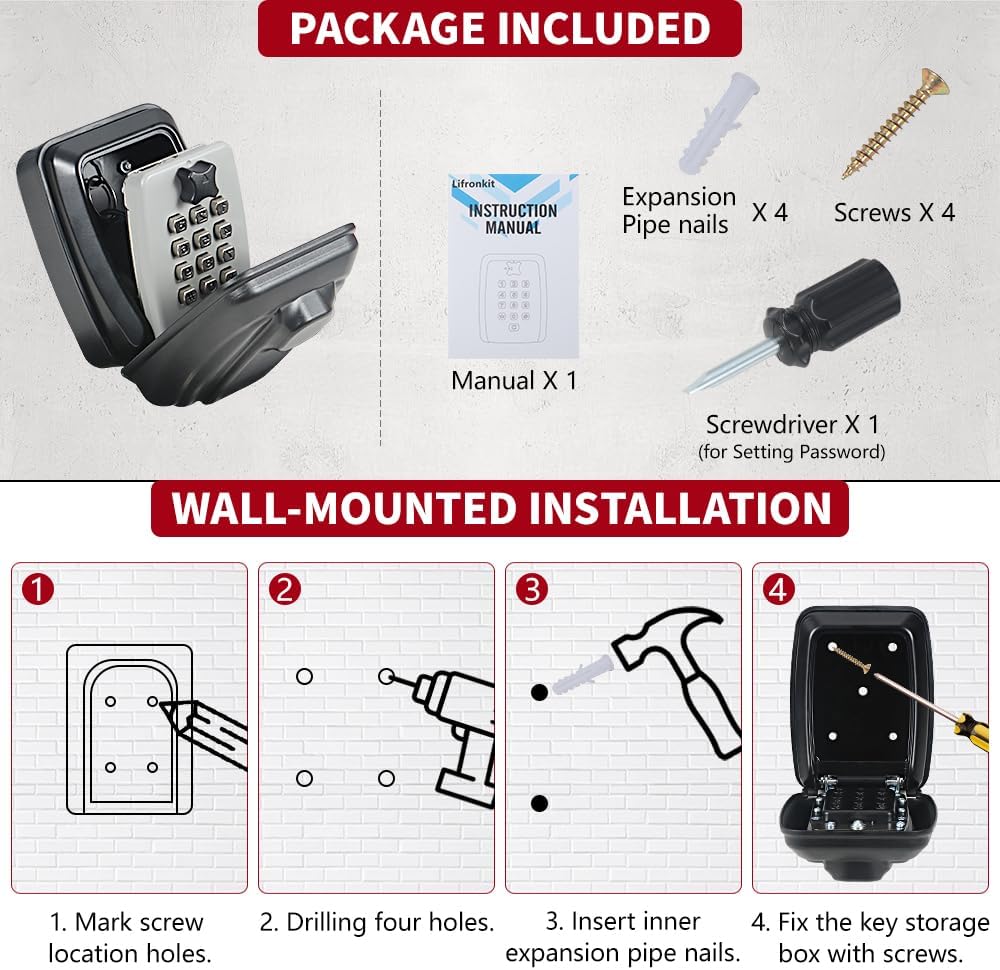 - Easy to Install and Use - Our key lock box comes with a back hook and screw fixing holes, so you can hang it on the car window without scratching it. It can also be fixed on the wall by screws. The included small screwdriver is convenient for you to set the password, and the metal button is more convenient to use. The numbers are clearer, even the elderly can use it easily.
