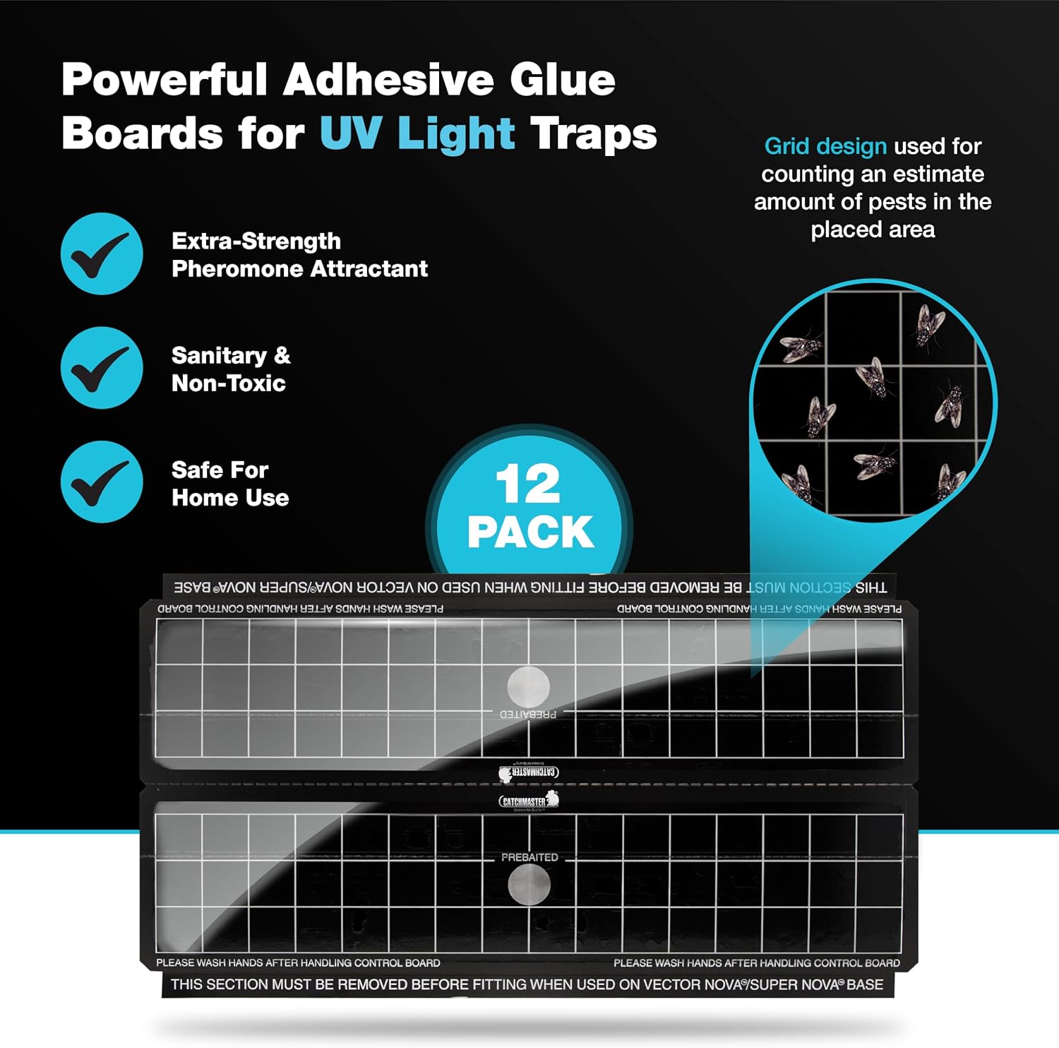 - GLUE BOARD REFILLS FOR UV TRAP: This set includes 12 replacement glue boards with perforations to create 24 glue boards compatible with Vector Fly Light Traps, including the Vector Classic, Vector Plasma Grill, Vector Plasma Screened, Vector Plasma One, Vector 15, Vector 30, and Vector Optima. The Vector Light Traps are sold separately.