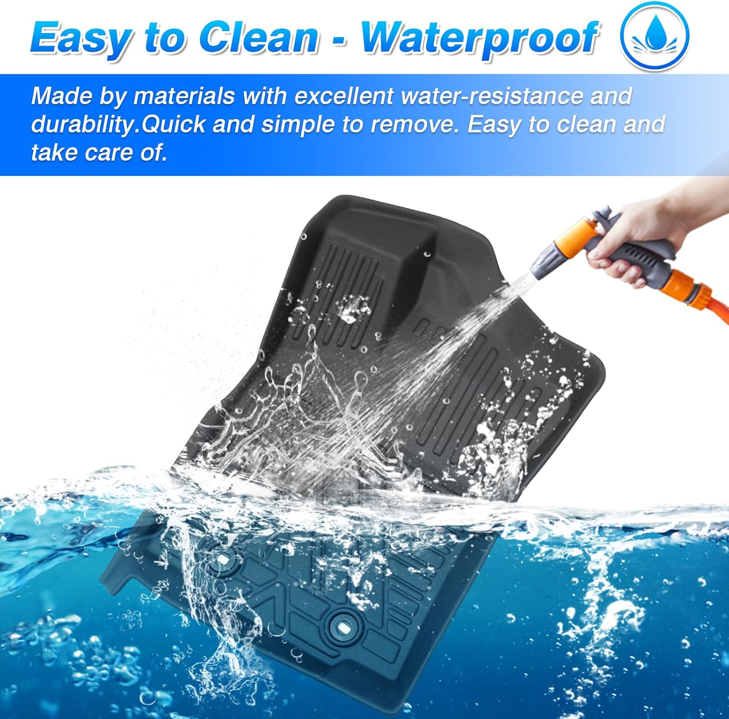 - All Weather Protect & Cleaning -- The F150 floor mats are waterproof, and the groove design forming channels to collects water, mud, snow, debris, ect, to avoid accidental skidding and stain to original car carpets. Easy to clean by rinsing it with water, and dry with towel.