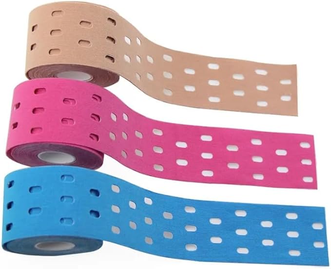 Punch Hole Cotton Waterproof Therapeutic Kinesiology Tape for Support & Recovery, Sports, Pain Relief, Beige