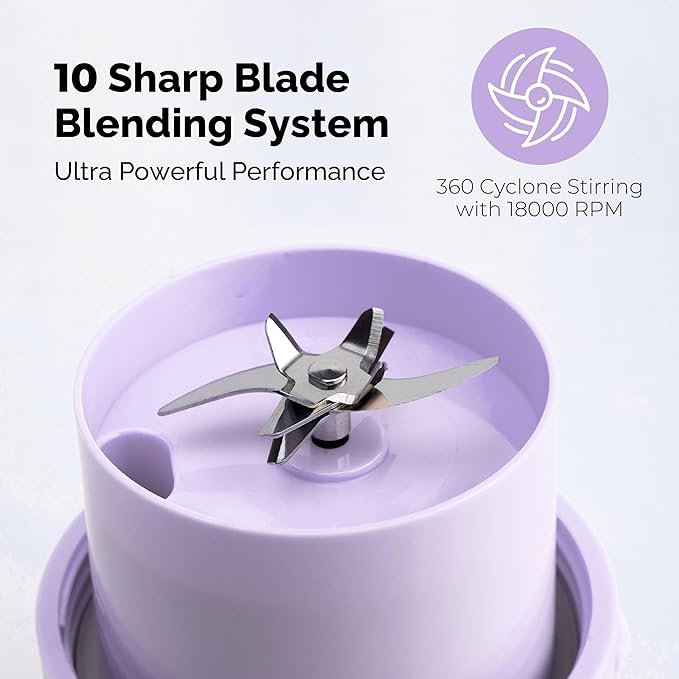 Personal Portable Blender For Shakes & Smoothies, Leakproof & Stylish Portable Mason Jar Shaker, Rechargeable Mini Blender with 10-Blade Blending System 14oz, Purple