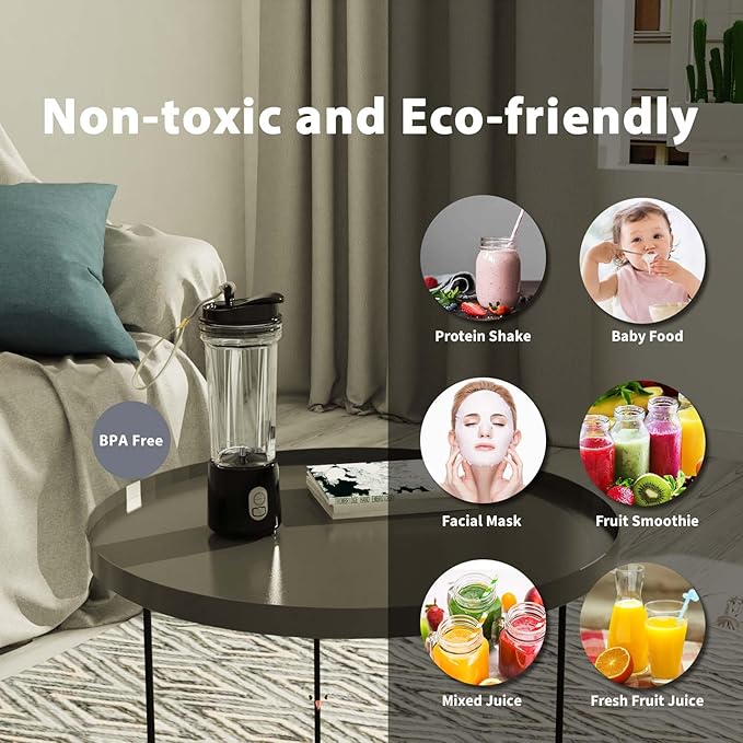 - 【Innovative Design】With a 500ml capacity and a 30-second automatic timer, making healthy drinks has never been easier. Furthermore, you can drink directly through the mouth of the bottle cap or insert a straw (included in the package), without having to prepare another cup.