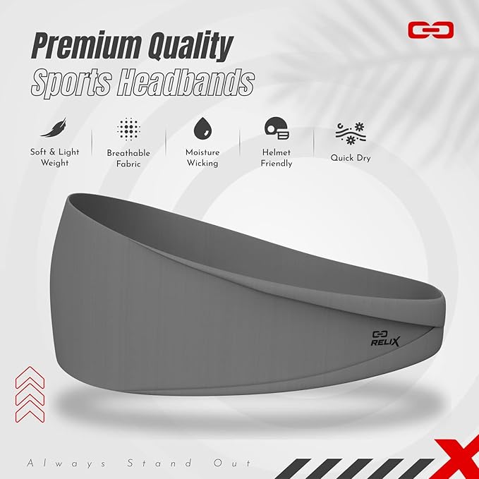 Relix Sports Headband for Men (Pack of 5) Moisture Absorbing Workout Headband, Sweatband Headbands for Running, Cycling, Football, Yoga, Unisex Hairband