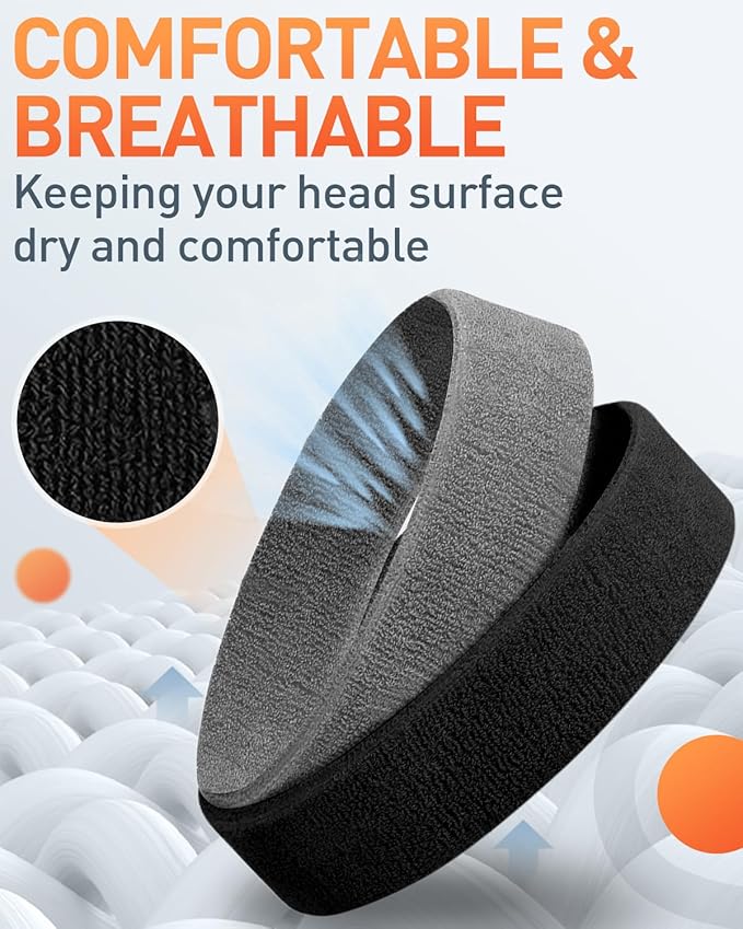 - NON-SLIP AND LONG-LASTING : Designed for a non-slip, secure fit, these sports headbands are lightweight and stay in place during physical activities. They effectively absorb sweat, wick away moisture, and dry quickly, ensuring sweat and hair are kept out of your face. This allows you to stay focused on your activities without interruption.