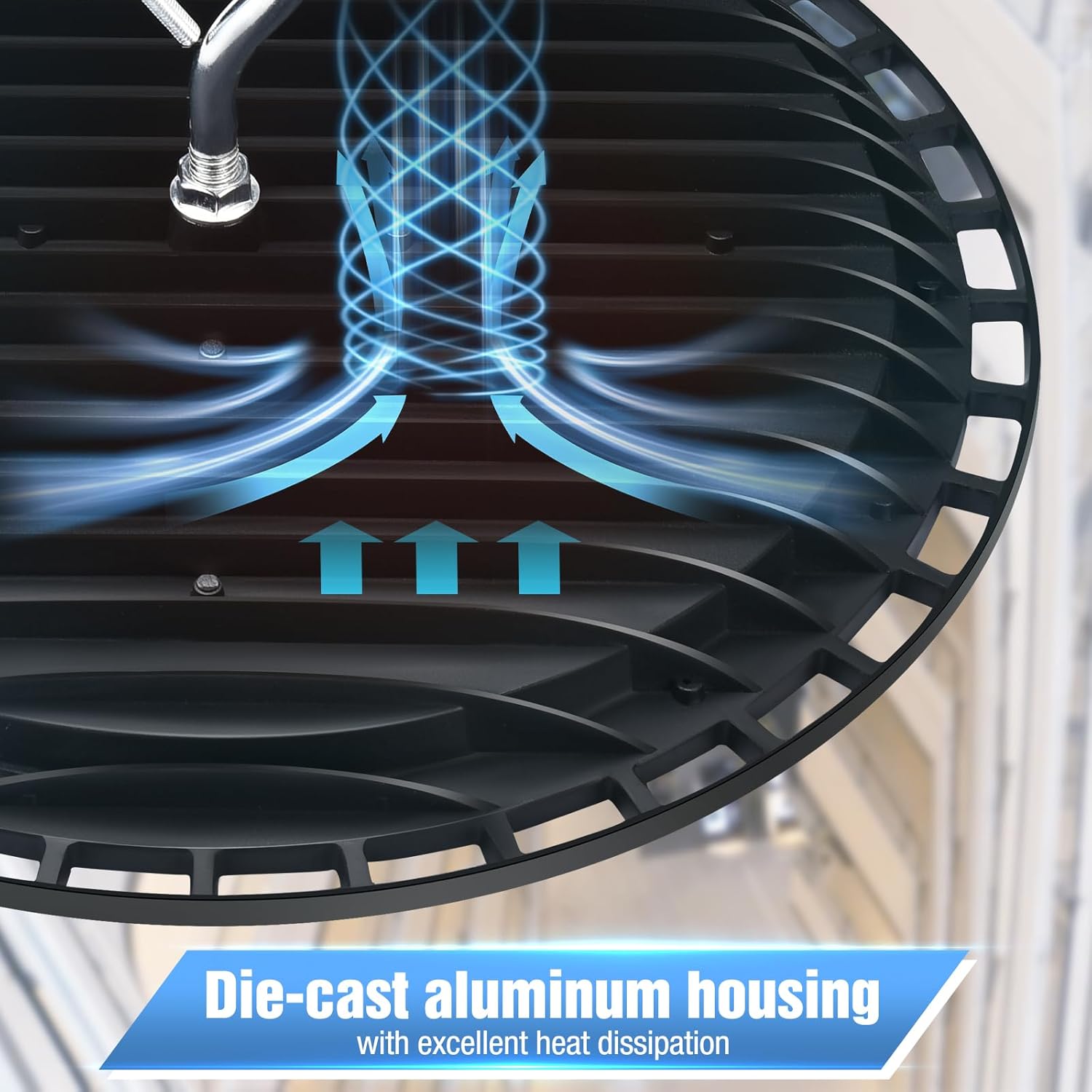 - User Friendly - Quick Installation:Follow our installation guide this high bay light can be installed easily and quickly. Providing a US plug with 5ft power cord makes it easy, quick, and safe installation. Also, there is an additional protection safety rope to keep it more stable on the ceiling. 100% environmentally-friendly, 100% safe and easy to install