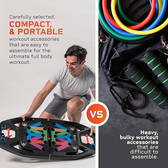 - ALL-IN-ONE HOME WORKOUT EQUIPMENT: Say goodbye to large and excessive exercise equipment, and enjoy this portable home gym package. This home workout system provides you with strength and endurance-building gym accessories for the ultimate full- body workout.