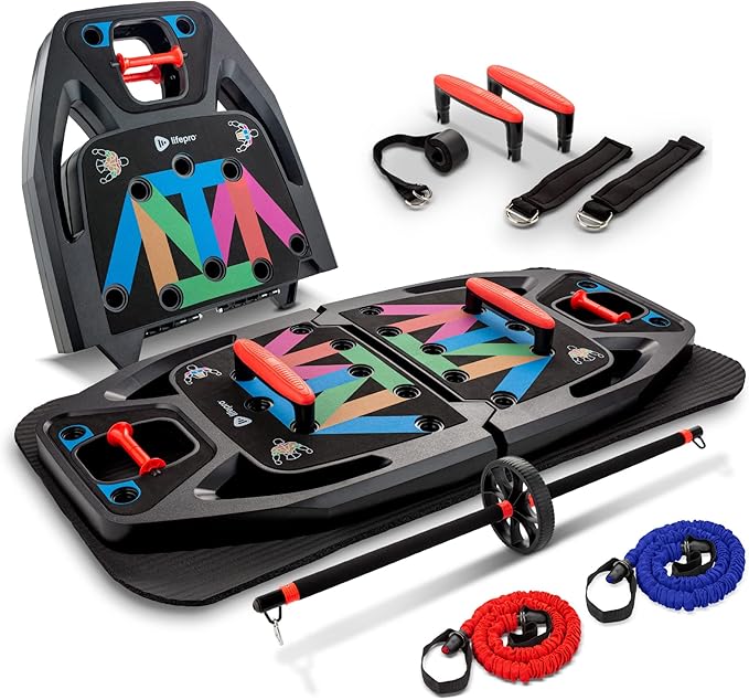 Lifepro Portable Home Gym with Push Up Training Board for Full Body Workouts Push Up Rack Board with 4 Resistance Bands - Home Workout kit Platform for Home Workouts