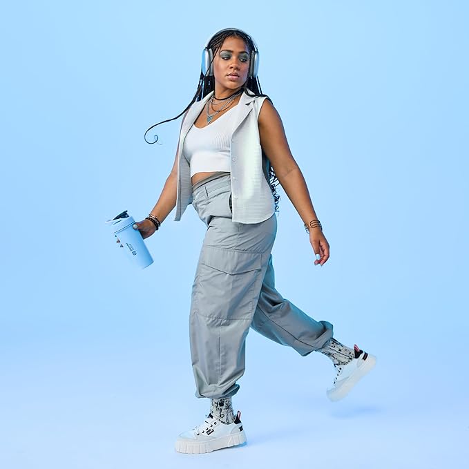 BlenderBottle Sport Sleek Insulated Stainless Steel Shaker Bottle with Wire Whisk, 25-Ounce, Dusty Blue – Protein Shakes & Hydration for Athletes & Fitness Enthusiasts, Easy Mixing, Slim Easy to Hold, Keeps Drinks Cold, Lockable Lid