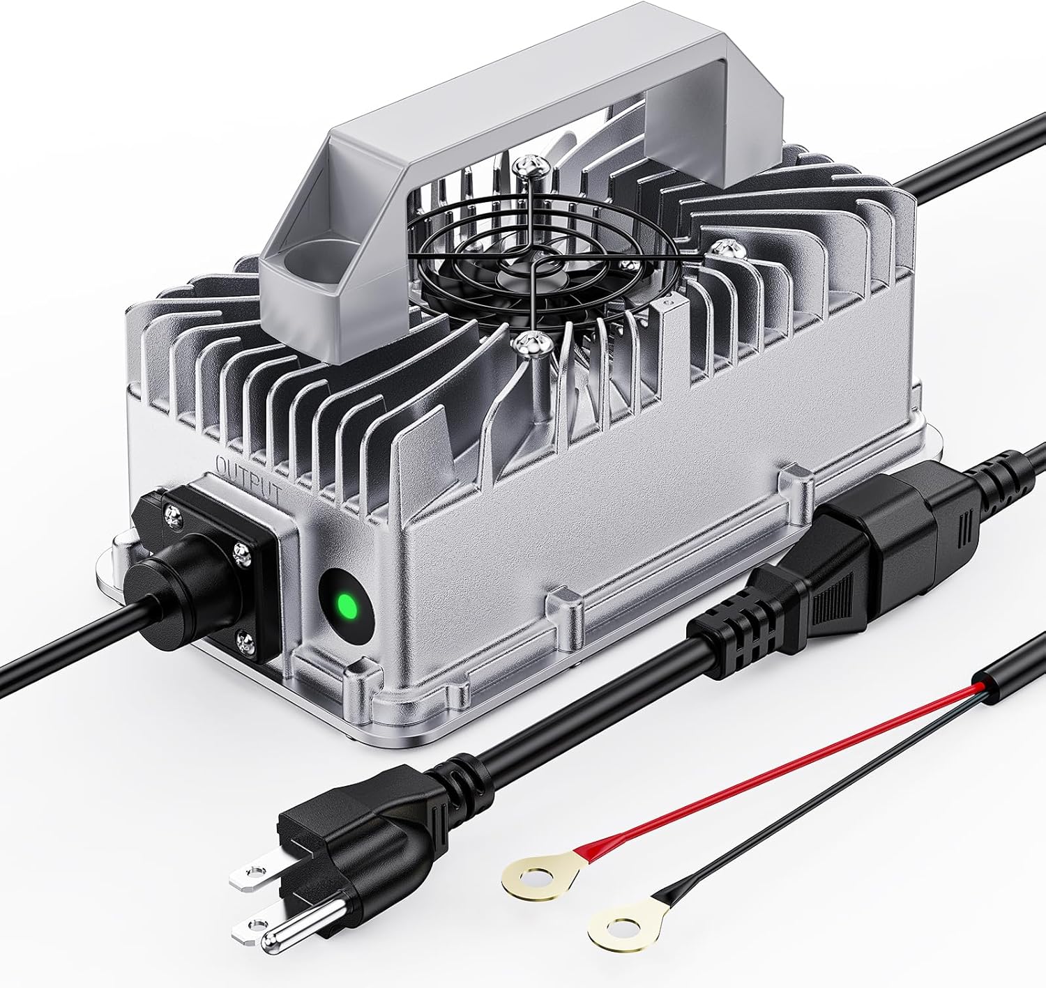 - 【Efficient Cooling Fan】: The lithium battery charger has a reasonable structure and good thermal design that make the battery charger small in size, Iight in weight and has good portability. In addition, there is a cooling fan on the outer surface of this 12V LifePO4 battery charger, its heat dissipation is very good, which can avoid overheating and ensure the lithium battery charger works silently and at low temperature.