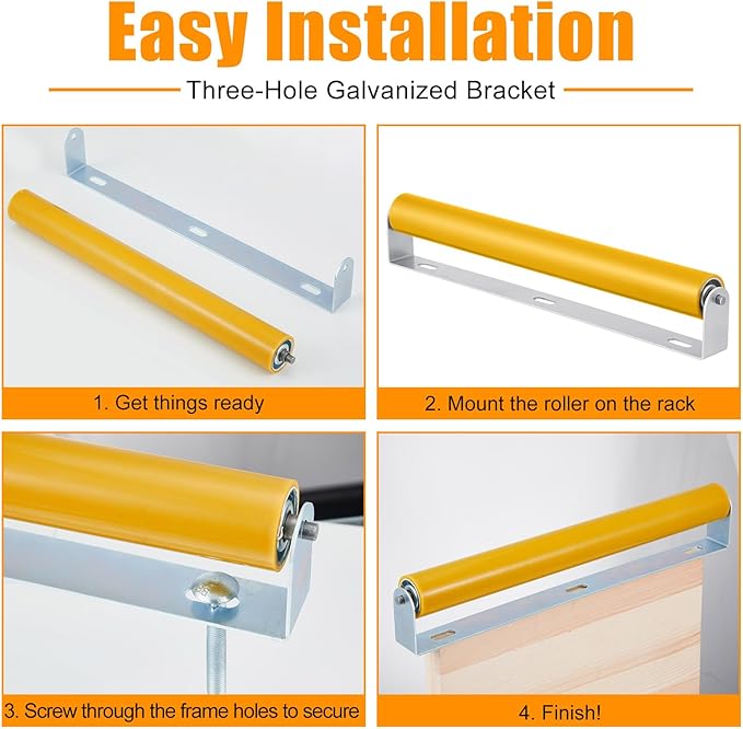- Applicable Scenario: the roller and bracket set allows you to easily and freely slide bulk materials, bulk products, and inventory, and reduces your labor to a fraction; It is suitable for industrial use, and even DIY projects, for example, it can help you easily unload kayak; They are built with durable materials, providing reliable performance for long term use