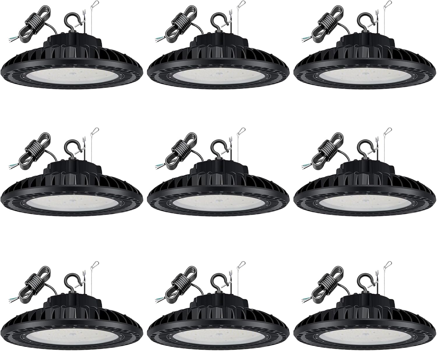 9 Pack 300W LED High Bay Light, UL&DLC Listed 41000LM Dimmable UFO High Bay LED Lights for Warehouse, 5000K Daylight IP65 Waterproof Commercial Bay Lighting πππππ-ππππ