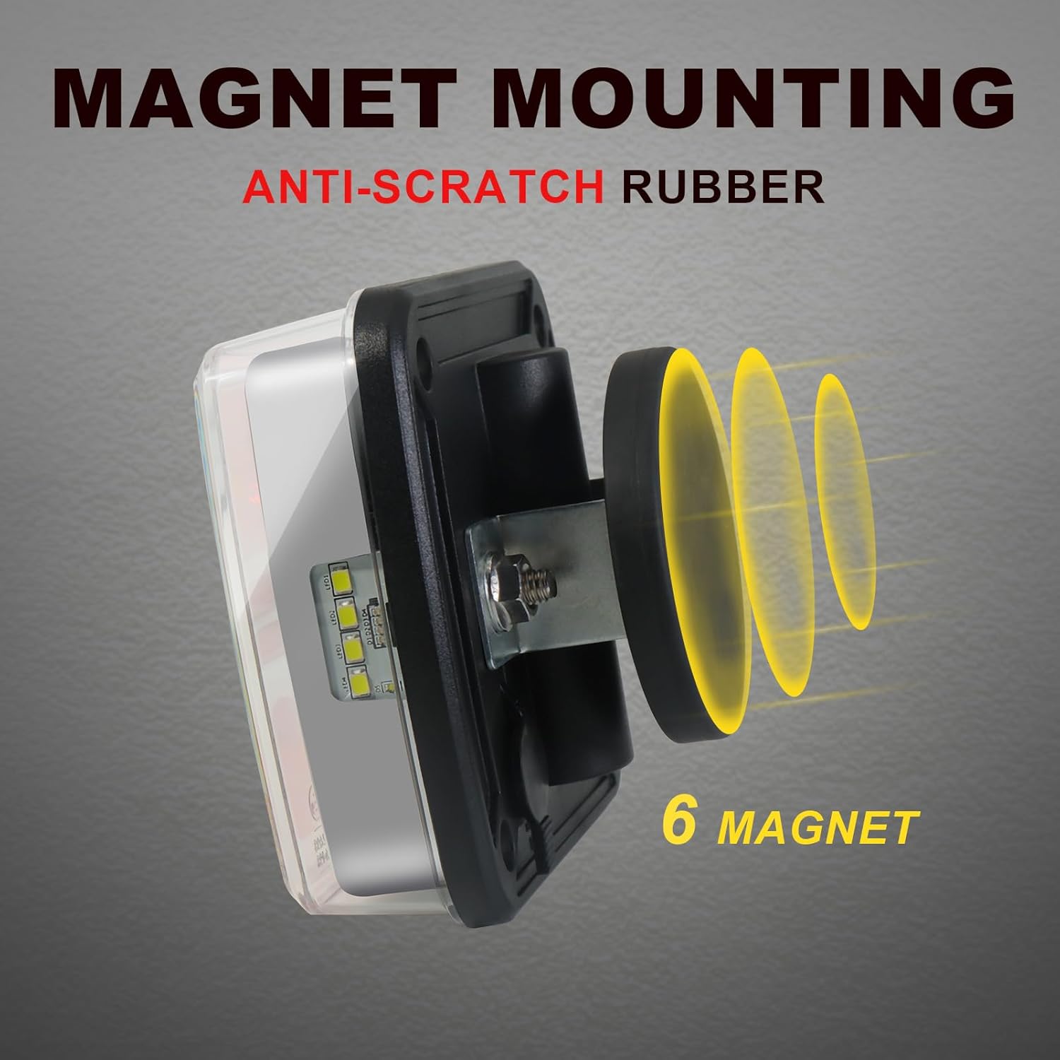 - ăEASY INSTALLATIONăCan be easily mounted on the rear of the truck's metal surface; the rubber-coated magnetic base prevents scratches, and the powerful magnetic base firmly grips during travel (tested up to 50 mph without detachment)