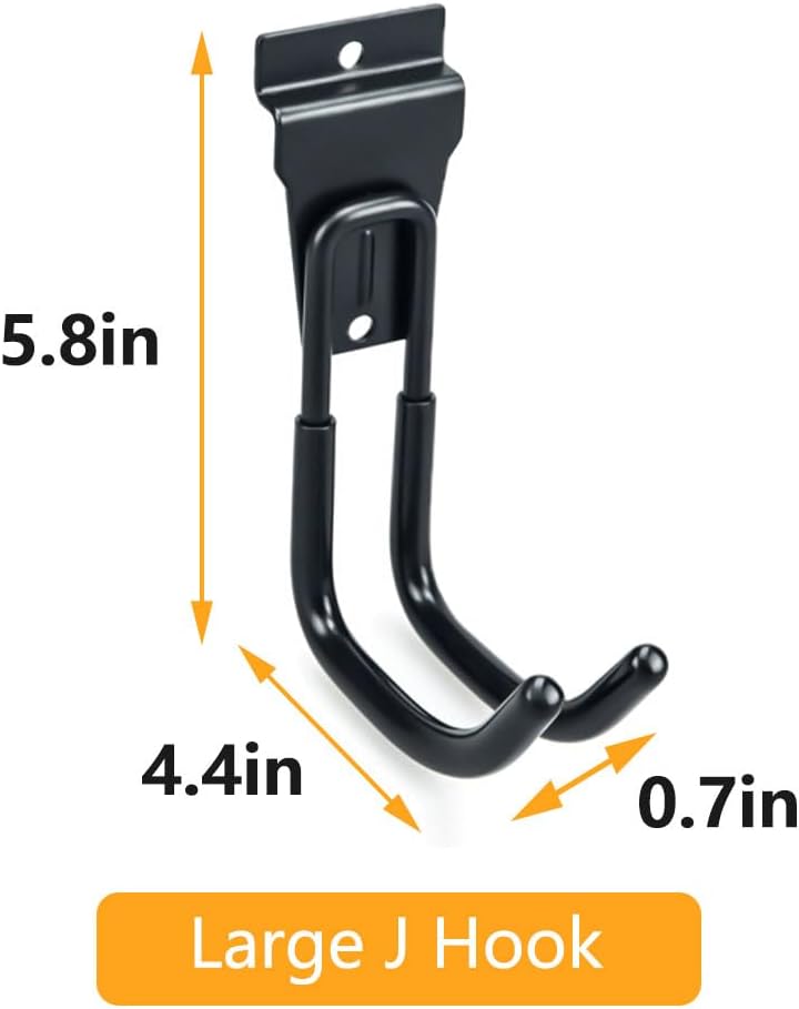 - 【STANDARD SLATWALL HOOKS】 A set of slat board hooks available in five sizes and two shapes, including 4 x Small U Hook, 2 x Medium U Hook, 2 x Large U Hook, 4 x Small J Hook, 2 x Large J Hook. Its variety can meet all your needs to utilize your space best.