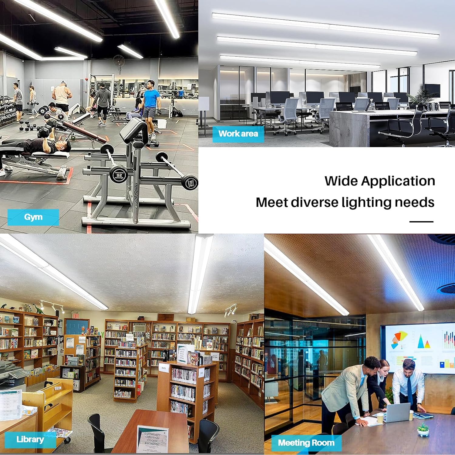 - WIDE APPLICATION - With lightweight and compact design, these 8ft led strip lights are ideal for both commercial and residential buildings for wide or narrow spaces. They can be widely used for garage, carport, car garage, warehouse, retail shop, car shop, workshop, supermarket, basement, workbench, utility room, storage room, barn, equipment room, laundry room and replacing fluorescent versions.