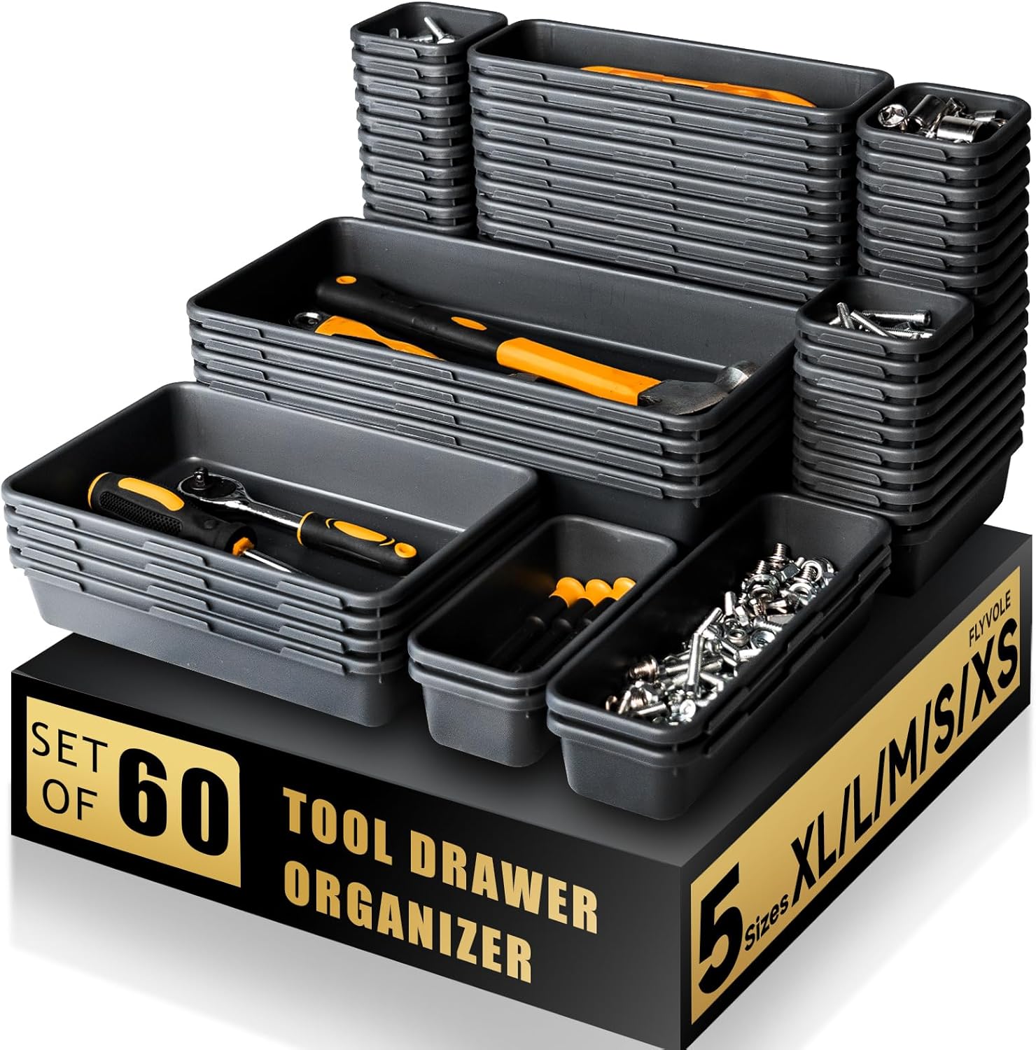 [60 PCS Upgraded] Tool Box Organizer Tray, Toolbox Desk Drawer Organizer, Tool Box Tray, Toolbox Organization Storage for Rolling Tool Chest (60 PCS)