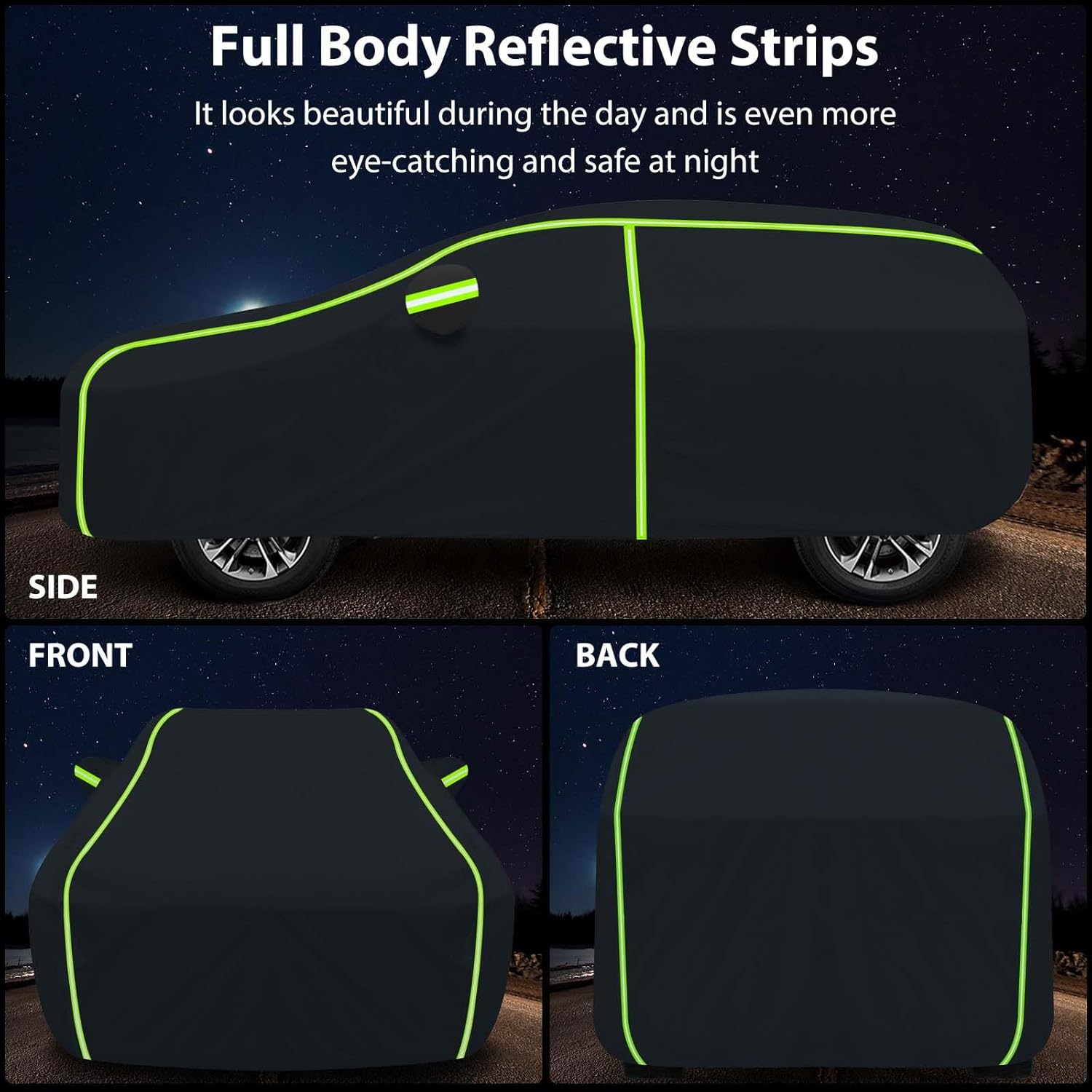 - ă High-quality materials ă 6-layer car cover can protect your vehicle in any weather condition. The outermost layer is PEVA new materials and the Surface contains a waterproof coating, scratch-resistant, wear-resistant, waterproof, and sun-resistant properties. The innermost layer is thicker cotton, which can better protect the vehicle, protect the paint, and prevent scratches.