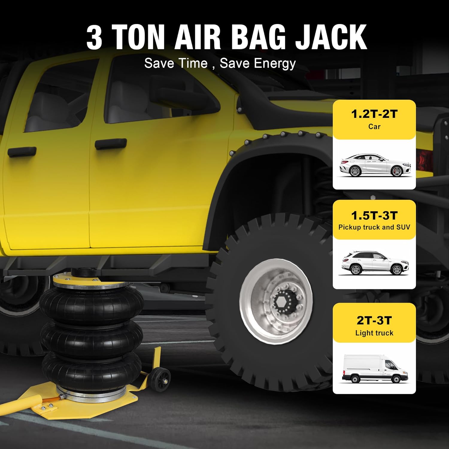 - Loading Capacity 6,600 lbs: Our airbags are capable of handling 3 ton/6600 lbs of load and can support a wide range of home and business models. From family cars and minivans to small cars and SUVs, this jack ensures your loading capacity.