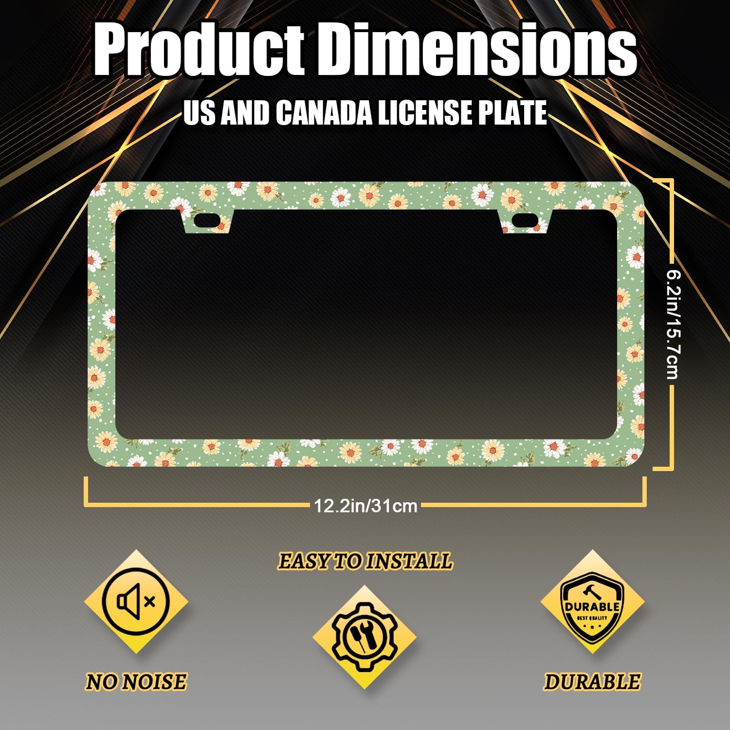Cute Daisy Floral License Plate Frame Beautiful Flowers License Plate Holder for Personalized Car Decorative Stainless Steel Colorful License Plate Daisy Auto Part with Screws 12.2" x 6.2"