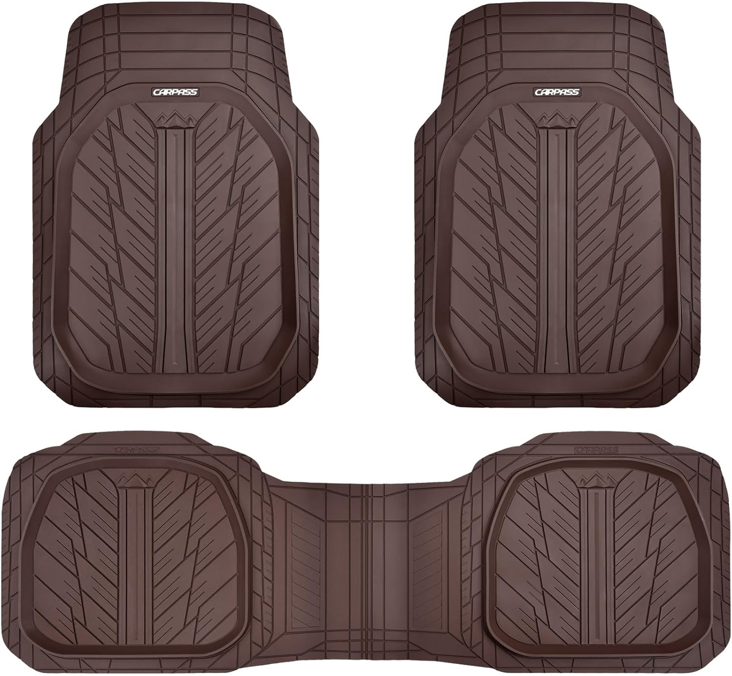 CAR PASS DeepDish Floor Mats for Cars Full Set,Heavy Duty Rubber Car Mats 3-Piece,Universal Waterproof Trim-to Fit Automotive Floor Mats for Truck Van SUV, Durable All-Weather Car Mats(Solid Browm)