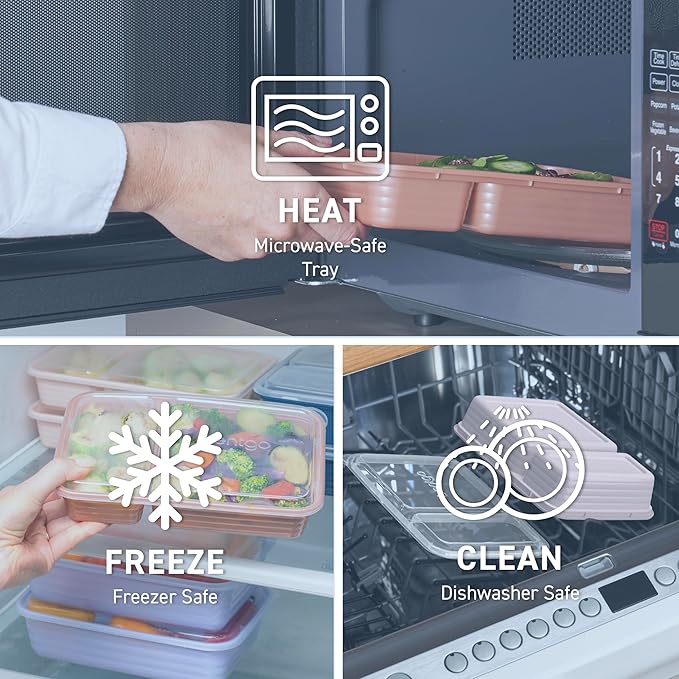 - Easy to Heat & Clean: Safely heat up your food straight from the freezer or refrigerator for warm, delicious meals and leftovers. Each meal prep container is both microwave and top-shelf dishwasher safe. Note: do not microwave lids, only the trays are microwavable. For best results, hand wash to extend the life of the product.