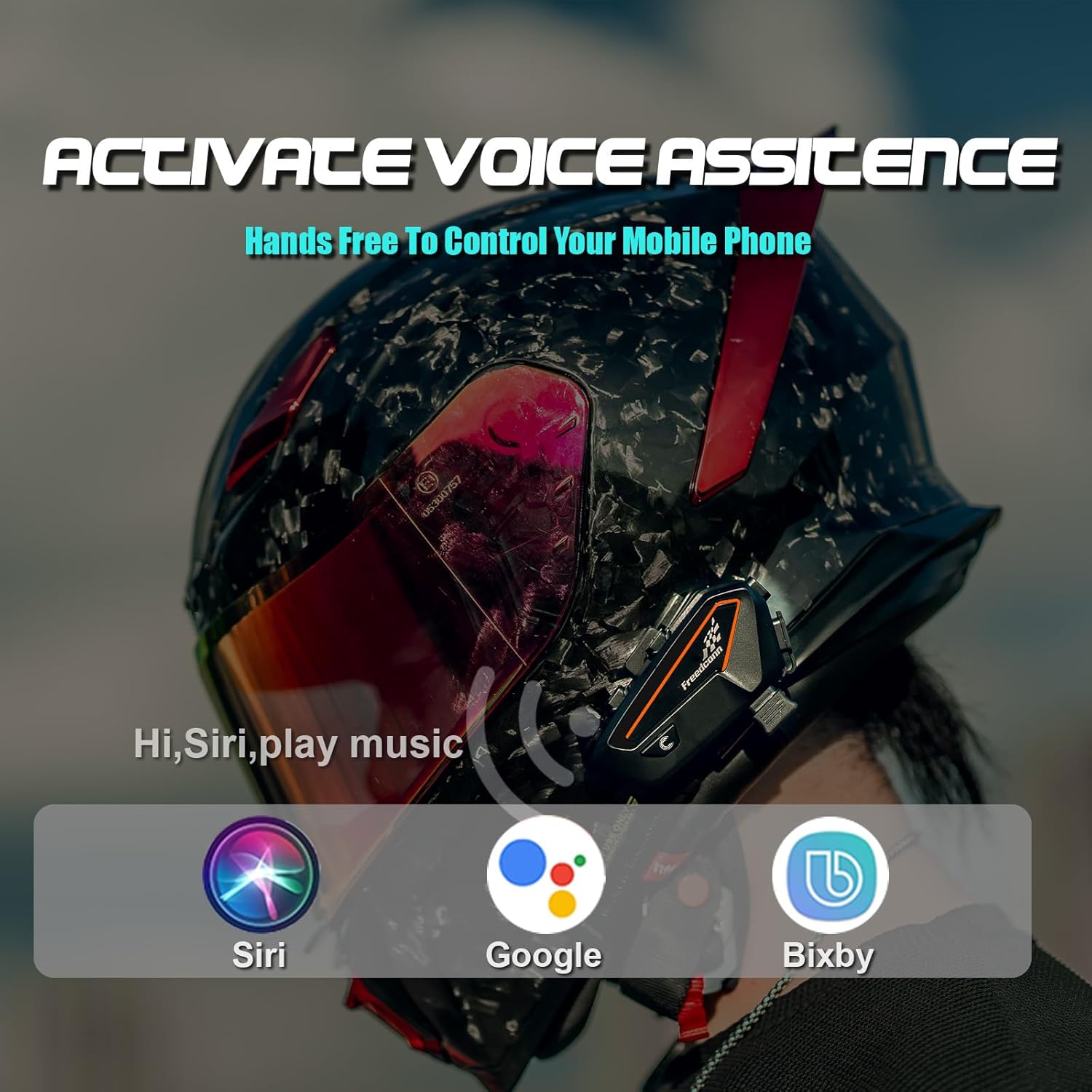 - 【Intelligent Design, Multifaceted Experience】The motorcycle helmet Bluetooth headset features a smart voice assistant for hands-free control, compatibility with 99.9% of devices, and an IP65 waterproof and dustproof rating for all-weather durability. With a Type-C charging port and support for intercom connectivity, this motorcycle helmet Bluetooth headset offers a versatile and hassle-free riding experience