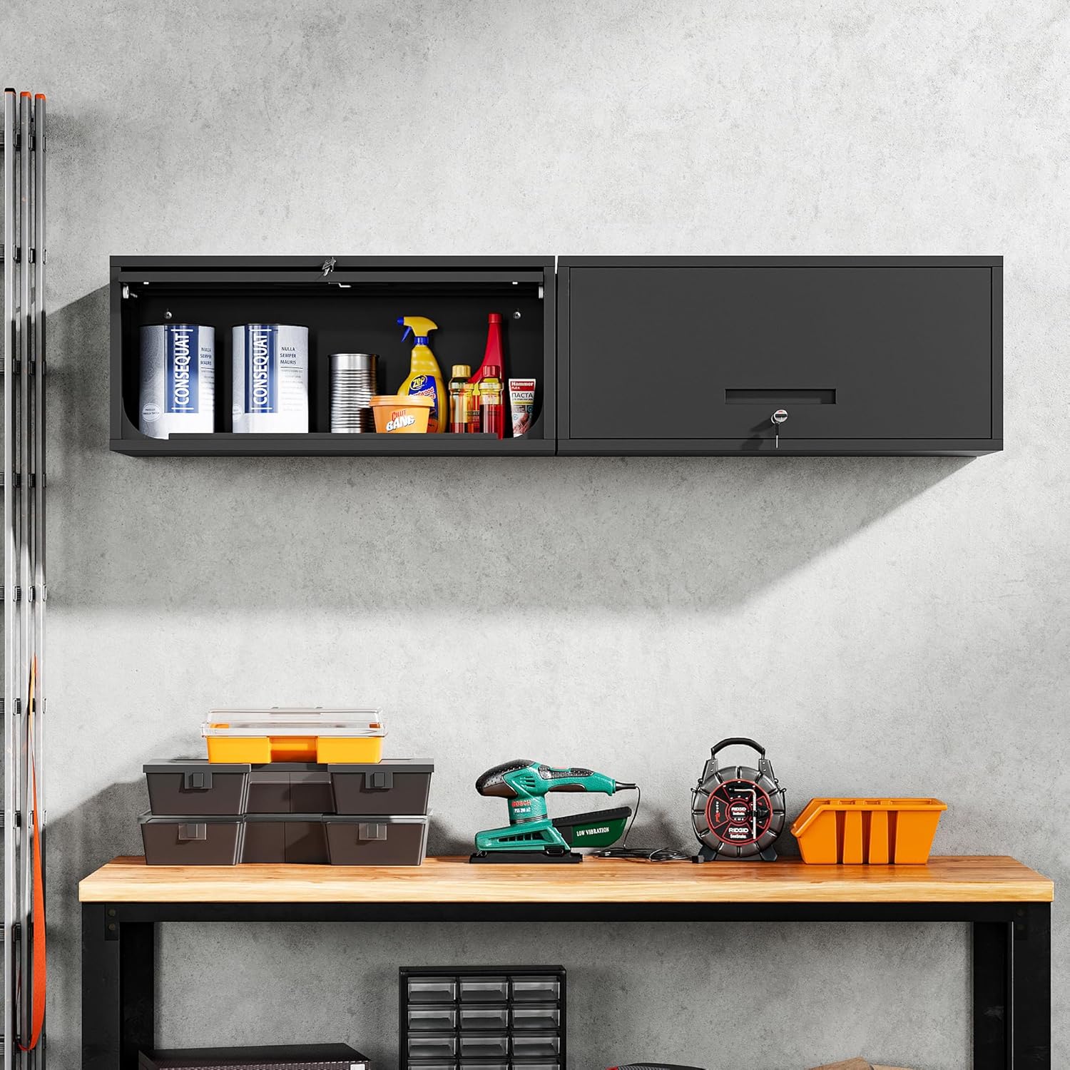 Yizosh Metal Garage Cabinet with Doors, Wall Mounted Storage Cabinet, Floating Tool Cabinet for Basement, Kitchen, Warehouse (Black, 13.7" H)