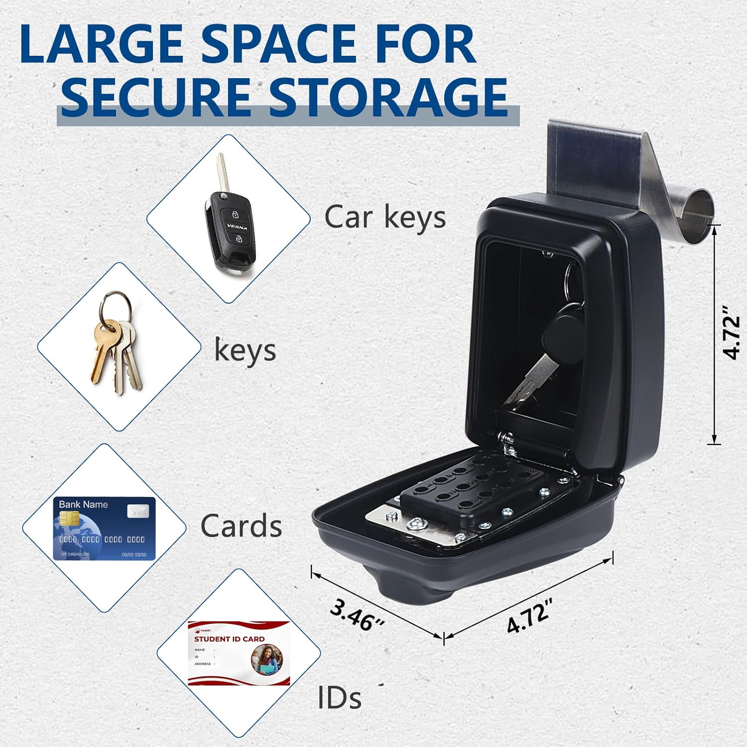 - ăMeet Your Storage Needsă- The key lock box is spacious enough to store your valuables and keep them secure while on-the-go. Internal Dimensions are 4 x 3.2 x 1.2in, ideal for holding house keys and car keys, cash, credit cards, and IDs, etc. This versatile and convenient car safe storage box is a great solution for various applications including rideshare, turo, getaround, and for joggers, surfers, skiers, and anyone who needs to go handsfree!