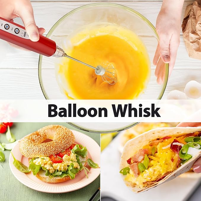 - 3 Whisks and 3 Speed Adjustable Frother : The matcha frother comes with 3 adjustable whisking speeds. SLOW SPEED for stirring egg yolks, powder drinks. MEDIUM SPEED for making jam, matcha tea. HIGH SPEED for milk or coffee froth, fluffy whipped cream, egg whites. Versatile 3 replaceable whisks: SPRING WHISK for creating milk and coffee froth, to make delicious drinks; BALLOON WHISK for mixing egg and whipping cream; HOOK WHISK for blending powders, making jam