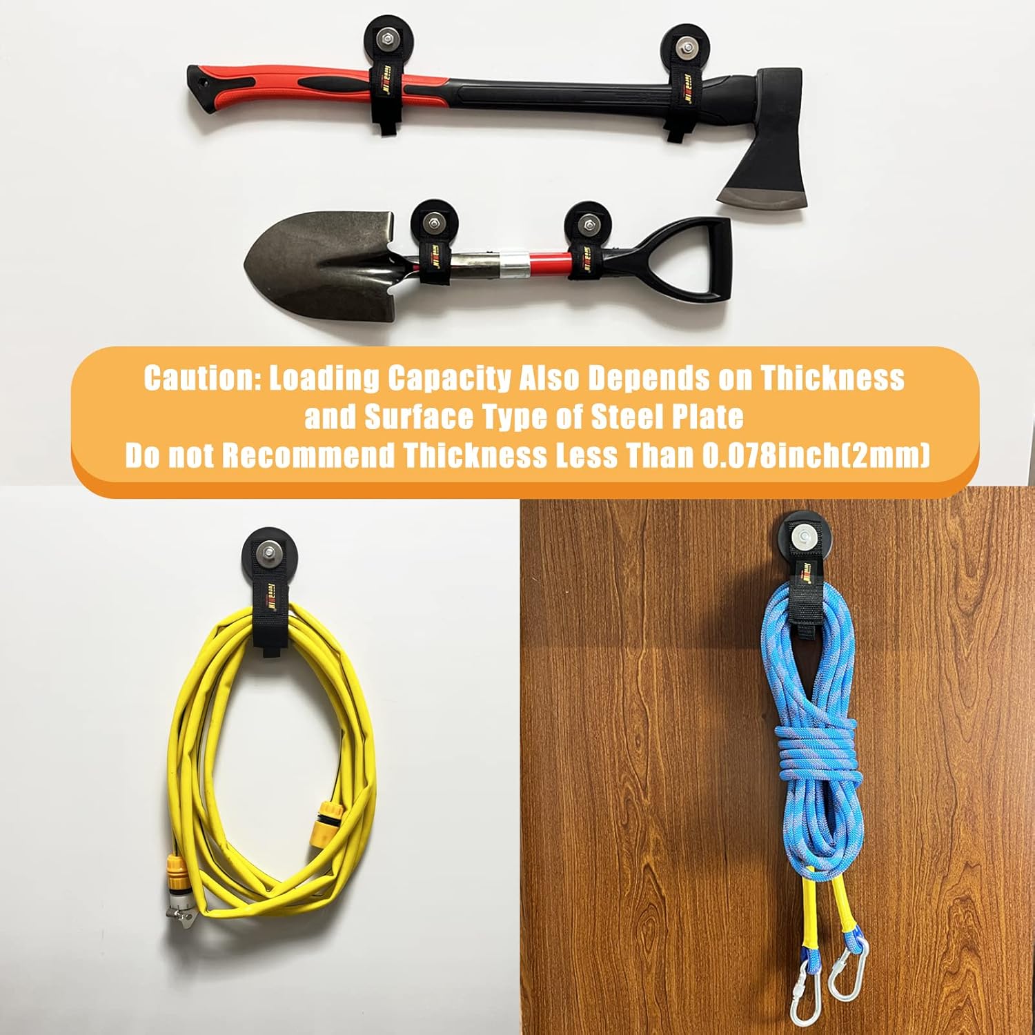- Versatile Magnetic Storage Hooks: Keep your garage, basement, boat, truck, trailer, or RV tidy with this heavy duty magnetic hook. Use it to organize a variety of items, including extension cords, cables, ropes, garden hoses, shovels, axes, and power tools