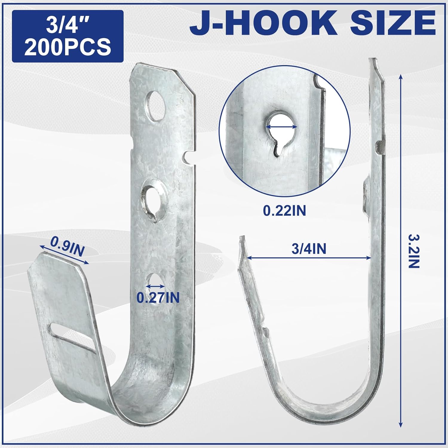- Ample Quantity for Your Needs: the package contains 200 pieces of 3/4 inch j hooks, coming in silver color, enough for your wire management needs, can also be shared with colleagues, family and neighbors