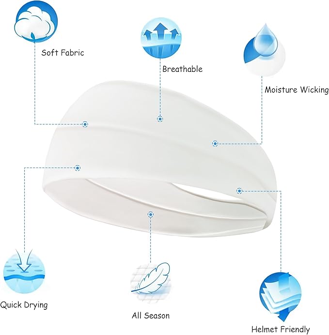 - 【White Sports Headband 】White Headband for men and women is lightweight,breathable, soft and sweat wicking; resist your eyes away from sweat, wick away moisture and dry quickly,keep your hair in place during workouts and sports