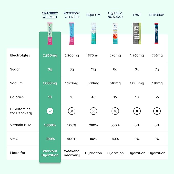 Waterboy Workout Hydration | 2,960mg Sugar Free Electrolyte Powder Packets | L-Glutamine + Vitamins | No Sugar, All Natural, Gluten Free | 15 Drink Stick Mixes (Fruit Punch)