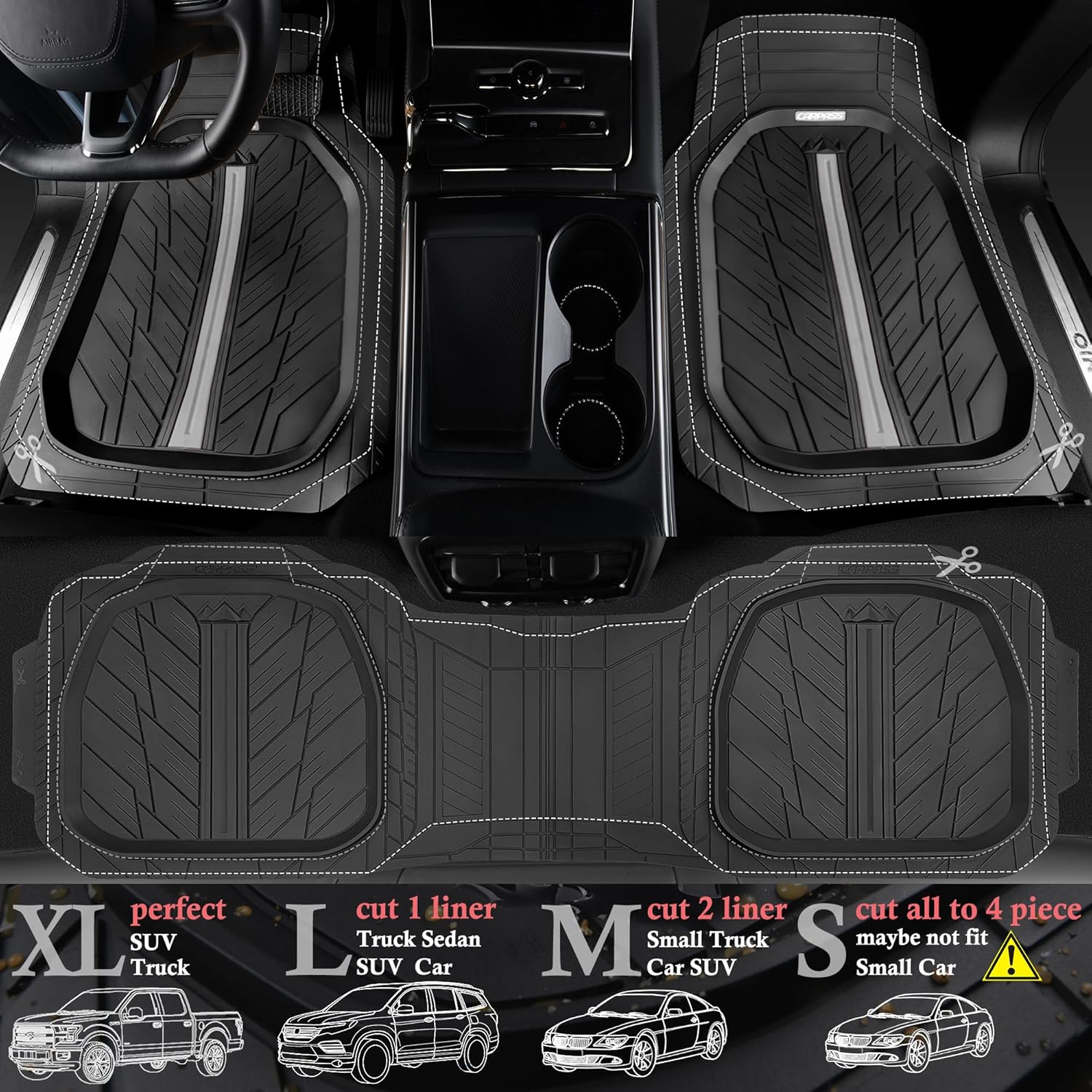 CAR PASS Tire Tread DeepDish Rubber Floor Mats for car Heavy Duty car mats All Weather, Universal XL~M Trim to Fit for Truck SUV Vehicle Automotive, Waterproof car mats 3 Piece(Gray Black)